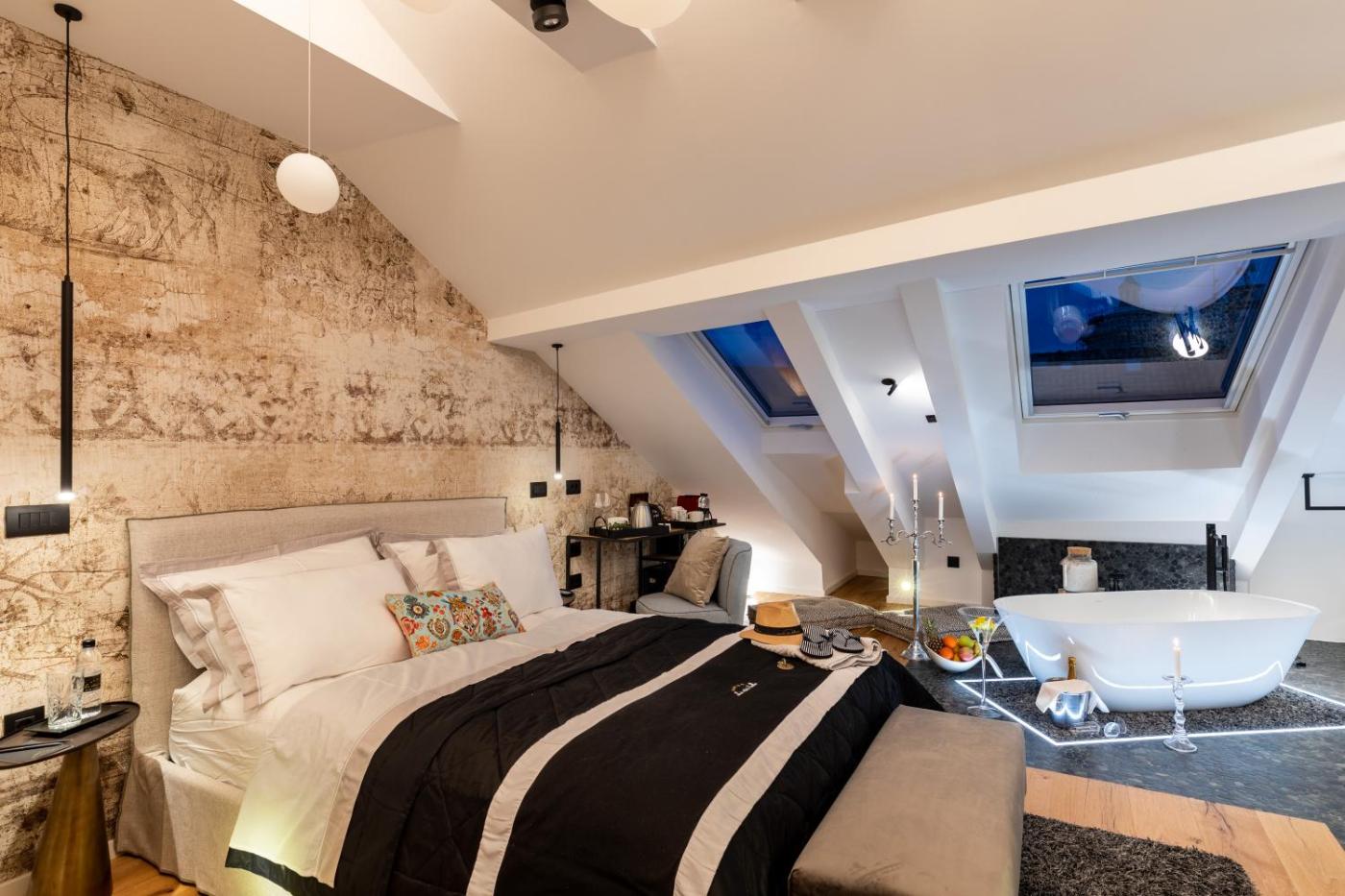 Deluxe Double Room with Bath. The hot tub is a top feature of this double room. Featuring free toiletries and bathrobes, this double room includes a private bathroom with a bath, a shower and a hairdryer. The spacious air-conditioned double room features a flat-screen TV with streaming services, a coffee machine, a safe deposit box, parquet floors as well as city views. The unit has 1 bed. ;