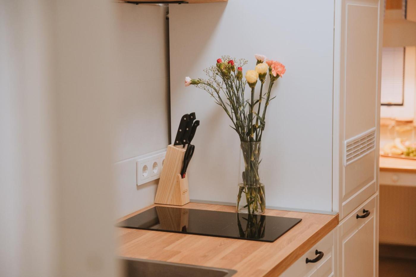 One-Bedroom Apartment. This apartment features 1 bedroom, a kitchen and 1 bathroom with a walk-in shower and a hairdryer. The apartments kitchen, which features a refrigerator and a microwave, is available for cooking and storing food. This apartment has a tea and coffee maker, flat-screen TV, garden views, as well as fruit for guests. The unit has 1 bed.